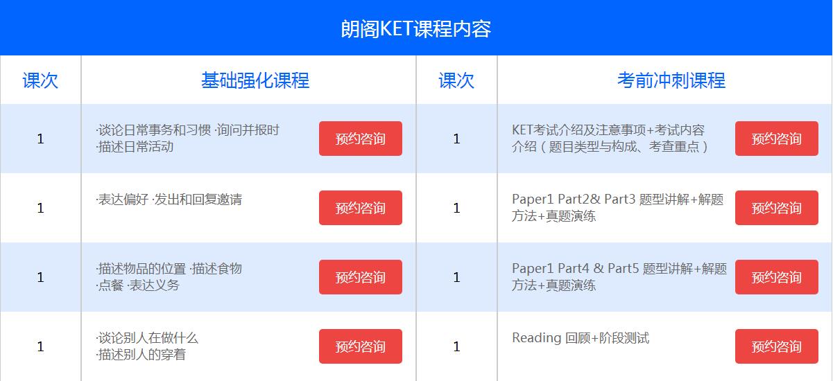 朗阁KET课程说明