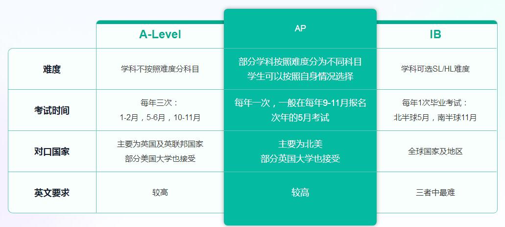 AP A-Level IB体系比较