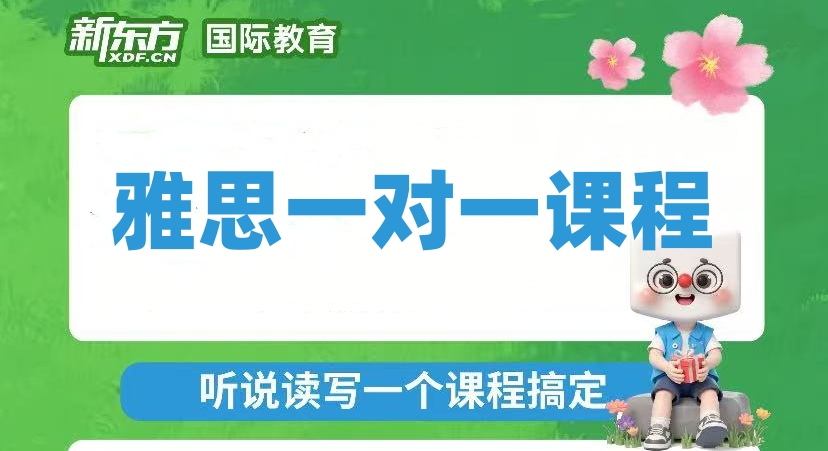新东方雅思一对一培训机构针对雅思有基本薄弱/单项偏科/备考冲刺/个性化提升的学员定制专属课程,课程包括雅思听力、词汇、写作、阅读等专项强化,培训课程齐全,专业教师团队,预约可享个性化方案提升。